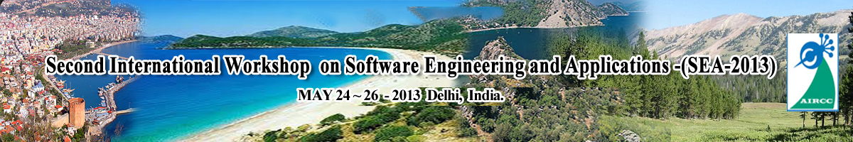 International workshop on Software Engineering and Applications (SEA-2013) will provide an excellent international forum for sharing knowledge and results in theory, methodology and applications of Software Engineering and Applications. The goal of this workshop is to bring together researchers and practitioners from academia and industry to focus on understanding Modern software engineering concepts and establishing new collaborations in these areas. Authors are solicited to contribute to the workshop by submitting articles that illustrate research results, projects, surveying works and industrial experiences that describe significant advances in the areas of software engineering & applications. Topics of interest include, but are not limited to, the following
